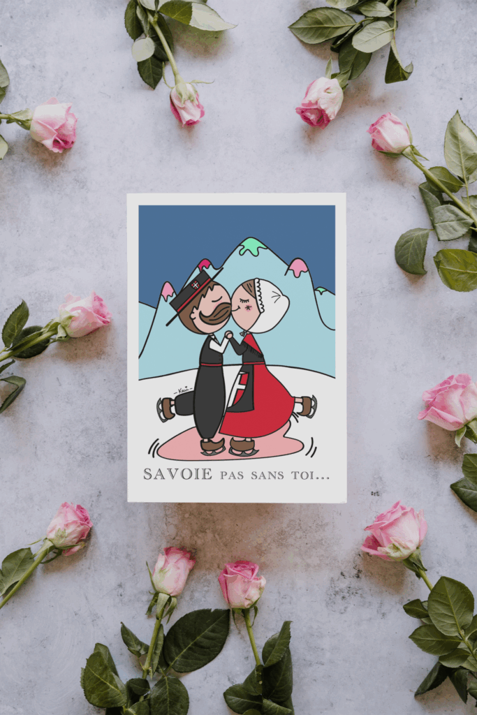 J’aime créer des visuels en lien avec les temps forts de l’année : Saint-Valentin, Pâques, Noël… Ces moments sont autant d’occasions d’imaginer des illustrations sur mesure, inspirées de mon univers et de mes personnages savoyards. Que ce soit pour une carte, un carnet, une affiche ou un petit objet illustré, chaque création peut être pensée spécialement pour une fête ou une attention particulière. Rien n’est figé : je travaille à la demande, selon vos envies et vos idées.