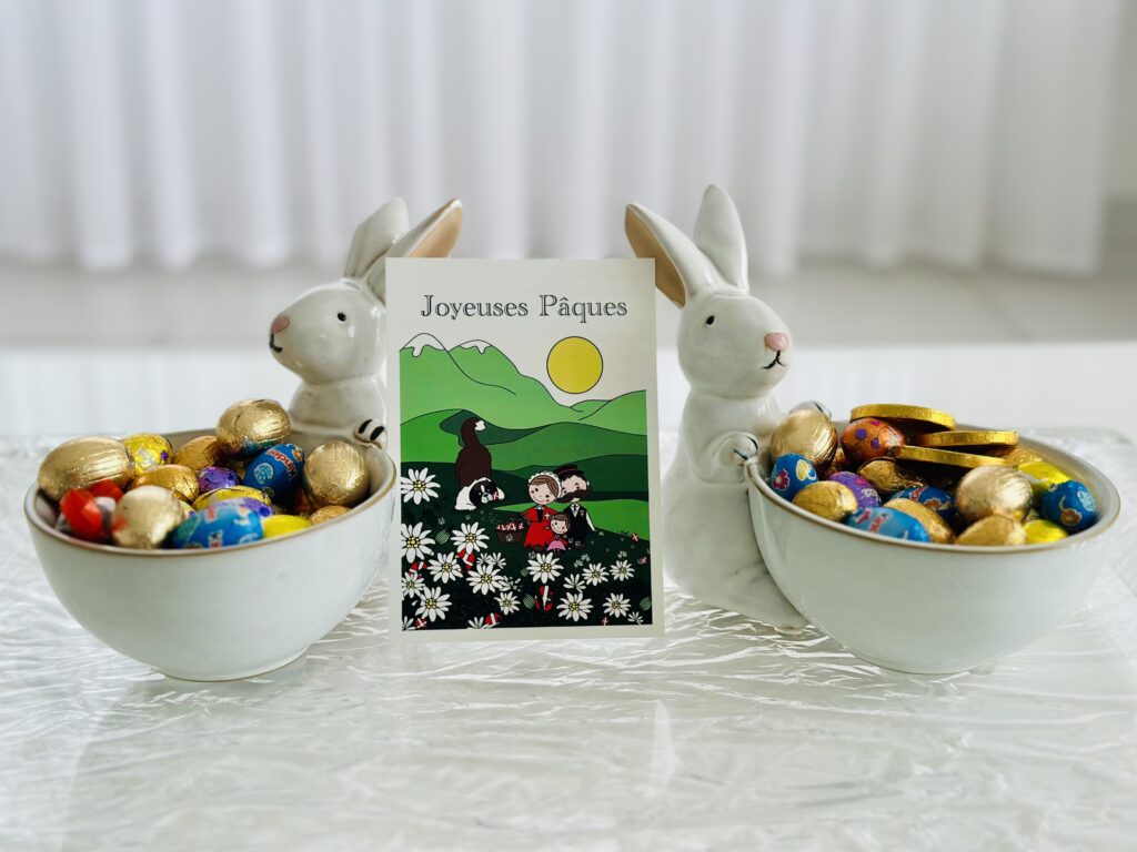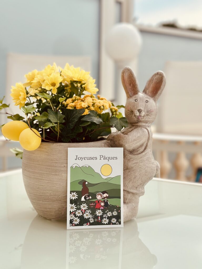 Je peux réaliser des créations autour de Pâques dans une ambiance douce et printanière, avec mes personnages savoyards revisités pour l’occasion. Par exemple : carnets reliés à la main, cartes illustrées ou petits objets à offrir.